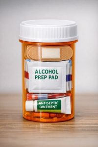 Transform your old pill bottle into a compact first-aid kit by filling it with band-aids, alcohol wipes, and antiseptic ointment. The bottle’s size is perfect for storing small quantities, and its waterproof nature ensures that the contents remain sterile and dry, even in damp conditions. This mini kit can easily be stashed in a purse, backpack, or glove compartment, making it an essential item for hikes, road trips, or daily commutes.