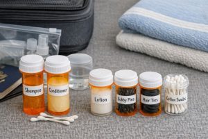Avoid bulky toiletry bags by using pill bottles to store small quantities of lotion, shampoo, or conditioner. This is particularly useful when traveling by air, where liquid restrictions apply. Simply transfer the liquids into clean bottles, label them, and enjoy a clutter-free packing experience. Additionally, these bottles are ideal for holding small items like bobby pins, hair ties, or cotton swabs.