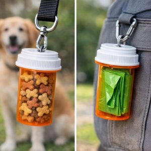 Carrying pet treats or waste bags can be cumbersome during walks, but pill bottles offer a convenient solution. Fill a bottle with small treats or a few folded waste bags, and you’ll have a compact dispenser that fits easily into a pocket or attaches to a leash. This ensures you’re always prepared for your pet’s needs while on the go.