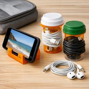 Create a simple phone stand by cutting a notch into the side of a pill bottle. This DIY stand is perfect for watching videos on your phone without holding it. Additionally, use bottles to wrap and store charging cords, preventing tangles and keeping your electronics organized. This is especially useful for travel, where keeping devices and accessories orderly can be challenging.