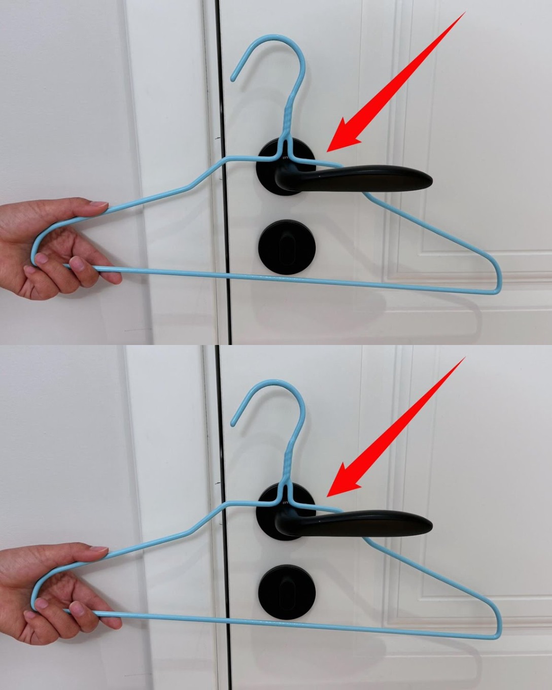 Placing a hanger on the doorknob can work as an effective reinforcement to lock the door from the inside and prevent intruders from entering.